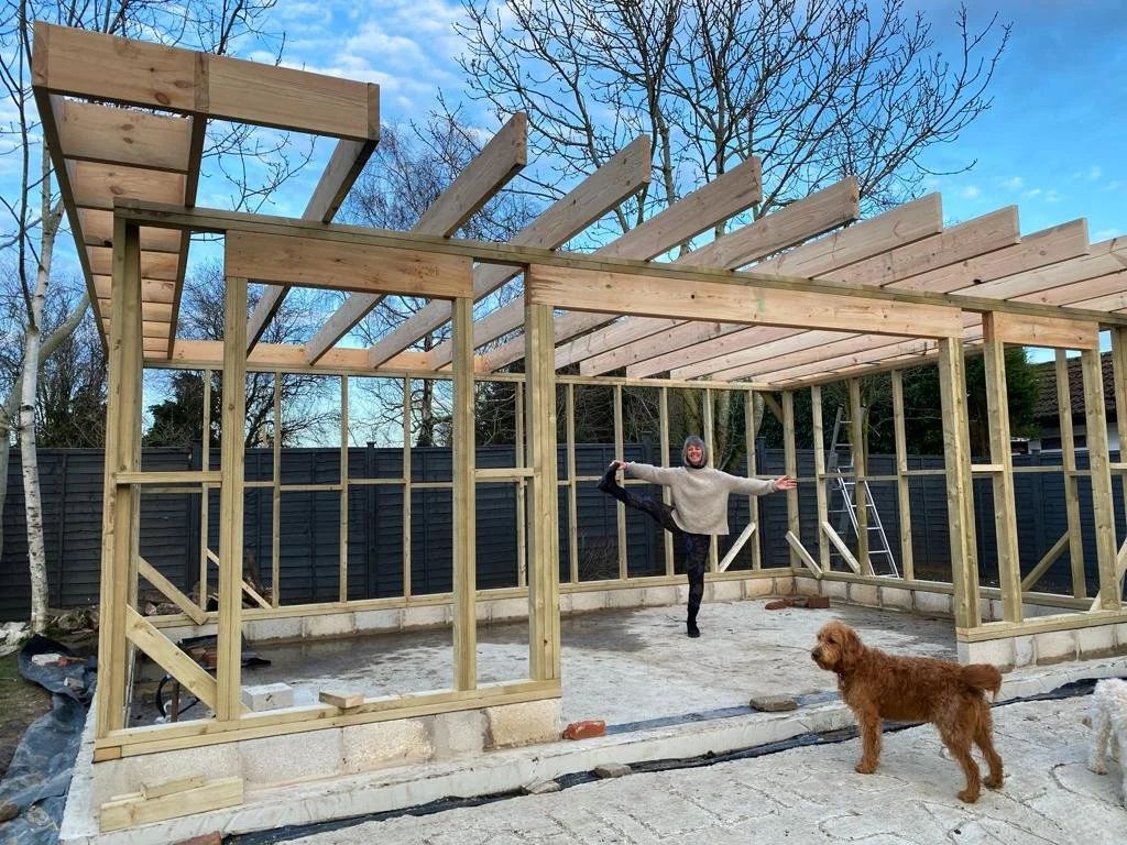 Stephen (my husband) started the groundworks for the Pause Place in February 2022 and by June we had a beautiful yoga studio at the bottom of the garden.